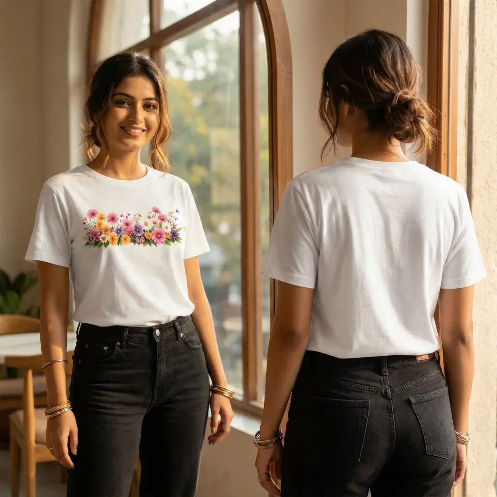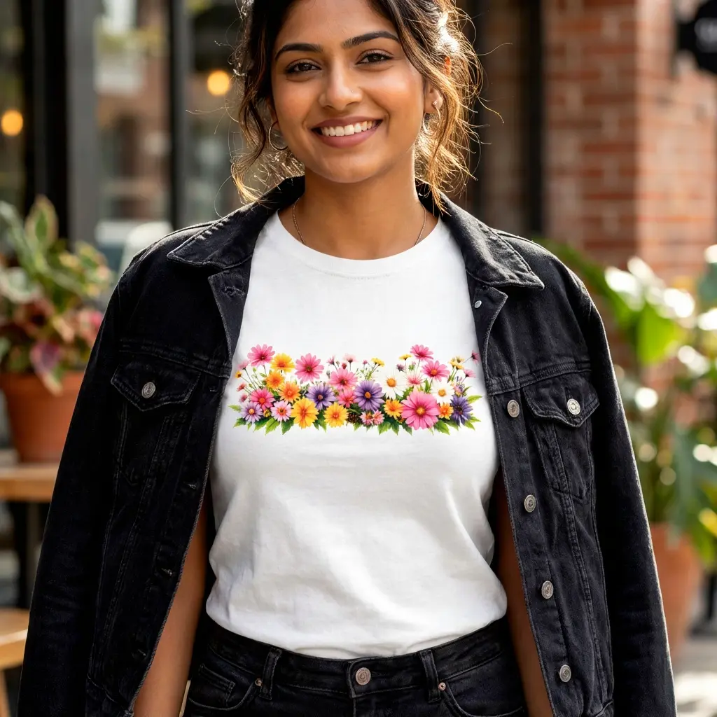 Let your style blossom with Bloom Theory, a white women’s t-shirt featuring a vivid floral print across the chest. Designed to evoke joy, creativity, and natural beauty, this tee pairs soft cotton comfort with a splash of color that brightens any day.