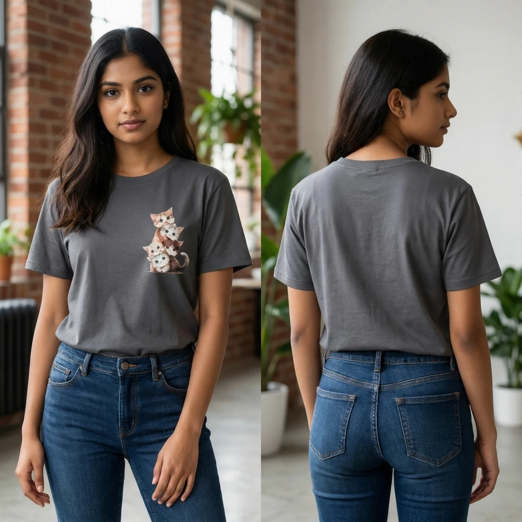 Cute meets comfort. The Triple Paws Women’s T-Shirt features a charming cat illustration on a soft grey base, designed for everyday wear with a relaxed, flattering fit. Crafted from premium-quality fabric for all-day comfort and lasting style.
